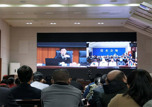 2020年4月26日,建水县2020年度基层党务干部培训班在建水会堂视频会议室举行,我院党总支书记赵景文、一支部书记梁玉萍、二支部书记李旭梅、退休支部书记贾文彩参加了培训。