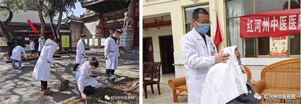 为认真贯彻落实党的十九届五中全会精神和习近平总书记系列重要讲话精神的具体实践,根据省、州、县各级党委政府推进爱国卫生“7个专项行动”决策部署以及建水县“在职党员进社区”工作要求,2021年1月8日、12日,我院党委积极谋划两个在职党员支部及部分团员共计50余人分别至松柏敬老院、文庙社区开展“在职党员进社区·文明实践众参与·爱国卫生我同行”志愿服务活动。