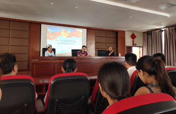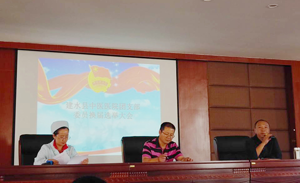 因共青团建水县中医医院团支部委员会现已届满,按照团章等有关规定,经医院团支部委员会研究,并报院党总支部委员会同意,于2018年8月24日15时在医院四楼多功能厅,召开了建水县中医医院团支部委员换届选举大会。本次会议由建水县中医医院团支部书记沐闻波主持,党总支部书记赵景文、院长王健、工会主席雷应刚、党总支组织委员李旭梅及28名团员参会。