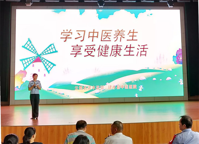 活动第一项议程,由建水县中医医院治未病科主任阳兆佳为建水监狱的警察职工们分享中医养生保健知识,让警察职工们了解什么是治未病,治未病包涵的内容,做到人人懂养生,人人少生病。