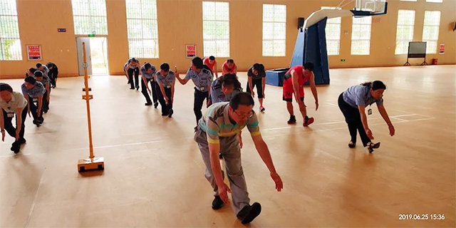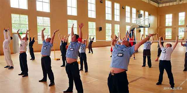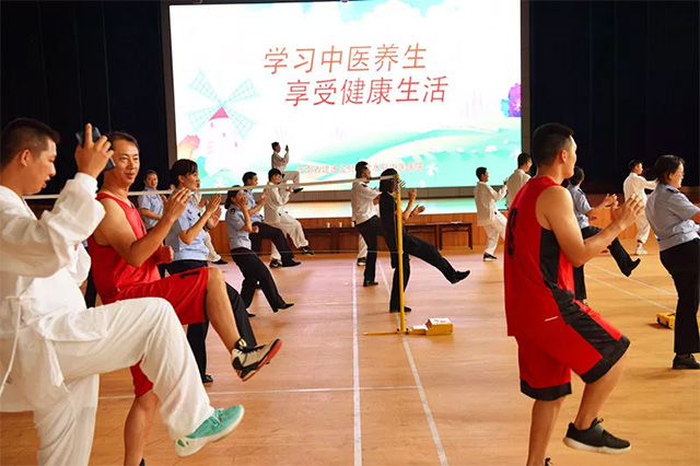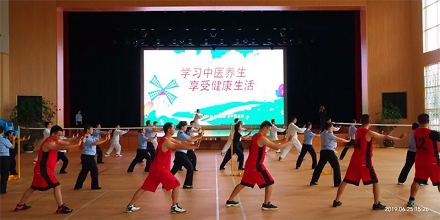 活动第二项议程,由建水县中医医院治未病科主任阳兆佳带领建水监狱警察职工们练习养生修真功。
