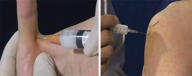 常用的药物为普鲁卡因加醋酸强的松龙或醋酸氢化可的松局部痛点注射,需要注意的是:①切不可将醋酸可的松用于局部封闭,因醋酸可的松无局部作用,药液吸收后可出现全身反应,因此封闭前应仔细核对药液。②醋酸强的松龙作局部封闭时,用量不要太大,间隔时间不能太短,一般剂量为每次12.5~2.5毫克,每隔5~7天封闭1次,3~4次为一疗程,最多不超过两个疗程,否则药液在局部积聚,抑制纤维组织形成,使局部组织脆弱。③封闭注射后,由于药物反应,局部可出现肿胀疼痛,一般48小时后可缓解并消失,如果72小时后仍有红肿,发热,应考虑是否有急性化脓性感染。