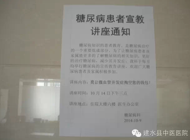 我院糖尿病科为了使糖尿病患者了解更多糖尿病相关知识,积极控制血糖,防治糖尿病并发症,坚持开展糖尿病患者宣传教育活动至今已七年,每年11月14日的世界糖尿病日还举办义诊活动,开展糖尿病宣教讲座、发放糖尿病知识资料、免费测量血糖、血压等。通过与患者的宣教及交流,对糖尿病的防治收到良好的效果,深受广大糖尿病患者欢迎及好评。