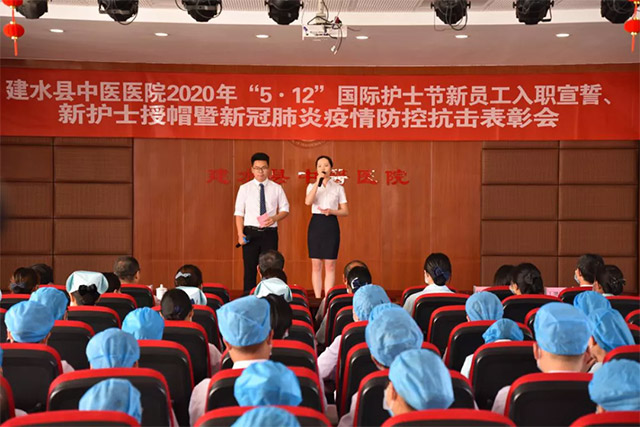 在这阳光明媚的初夏时节,人心思进的激昂时刻,为纪念第109个“5·12”国际护士节,弘扬南丁格尔无私奉献、救死扶伤的人道主义精神,强化医务工作者的责任感和使命感,近日,建水县中医医院举行了2020年“5·12”国际护士节新员工入职宣誓、新护士授帽暨新冠肺炎疫情防控抗击表彰会。建水县卫生健康局局长邓皓文,建水县中医医院党政领导班子和百余名职工代表参加了此次活动。