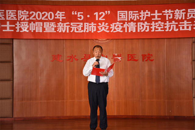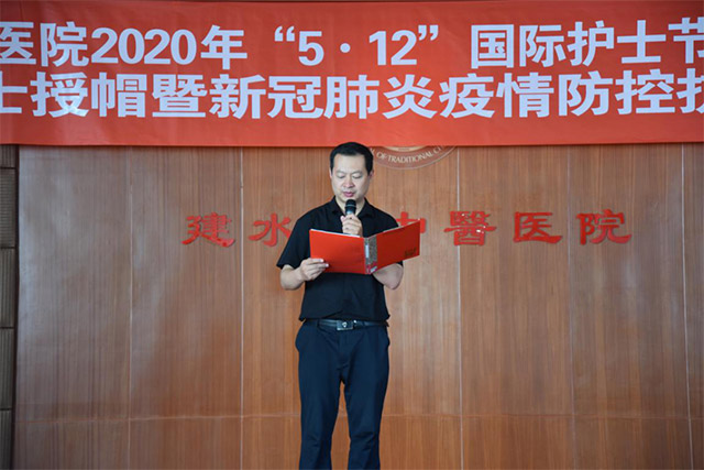 县卫生健康局局长邓皓文作了重要讲话,向全体护理工作者致以节日的问候,充分肯定了我院护理工作者的工作成绩和对医院发展做出的贡献,同时也对新时期的护理工作提出了要求。建水县中医医院院长王健代表医院党政领导班子向全院职工致以节日的祝福,希望大家在今后的工作中继续发扬爱岗敬业、无私奉献、奋勇争先的精神,继承好、发展好、利用好中医中药,为全县人民群众的生命健康保驾护航。
