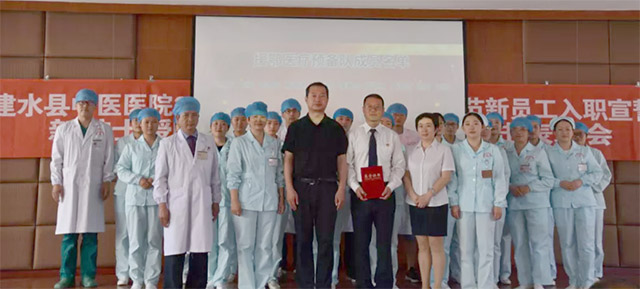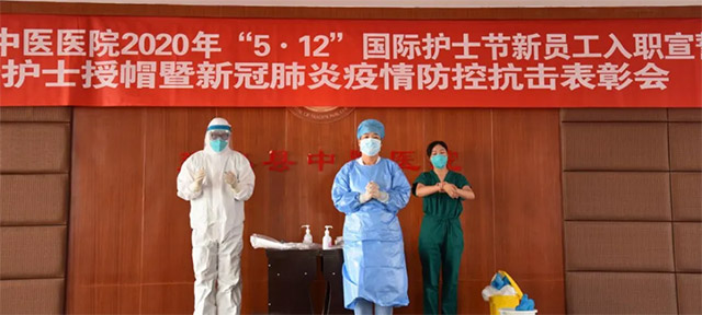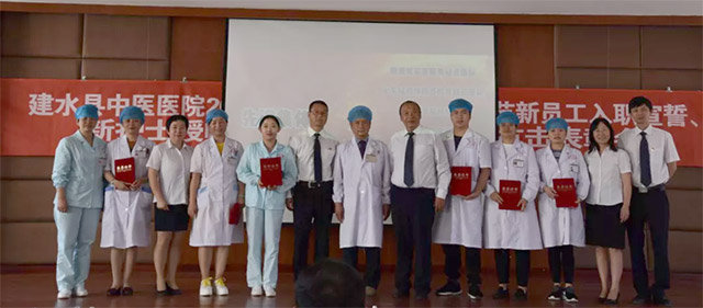 随后,举行了新护士授帽、新员工入职宣誓仪式。院领导赠予新入职医生中医书籍,赠的是书籍,育的是希望,并祝愿他们今后能走的更好更稳。新员工代表孔巧巧同志发言,她表示一定不负医院的重托,会努力做好新一代中医人的标杆典范。