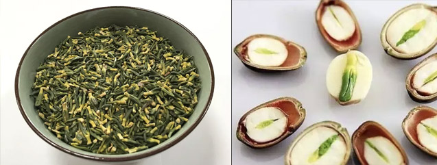 本品为睡莲科植物莲的成熟种子中的干燥幼叶及胚根。取出,晒干。