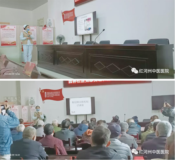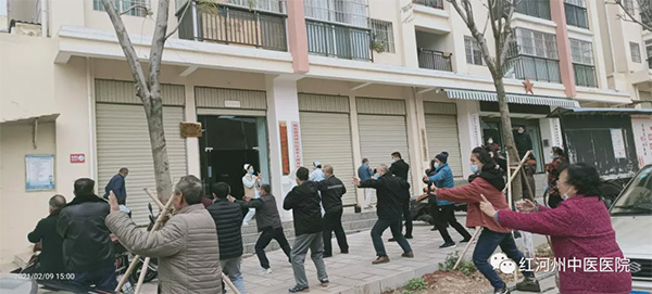 春节将至,为进一步助力爱国卫生“七个专项活动”整治工作,宣传疫情防控知识,普及中医传统技术,开展社区健康文明生活方式,红河州中医医院中医特色护理门诊专家应建水县西林社区邀请,于2021年2月9日开展讲座活动和指导中医养生功法练习,增强居民春节前后防控意识,从而做好自我防范,营造祥和、安全的节日氛围。