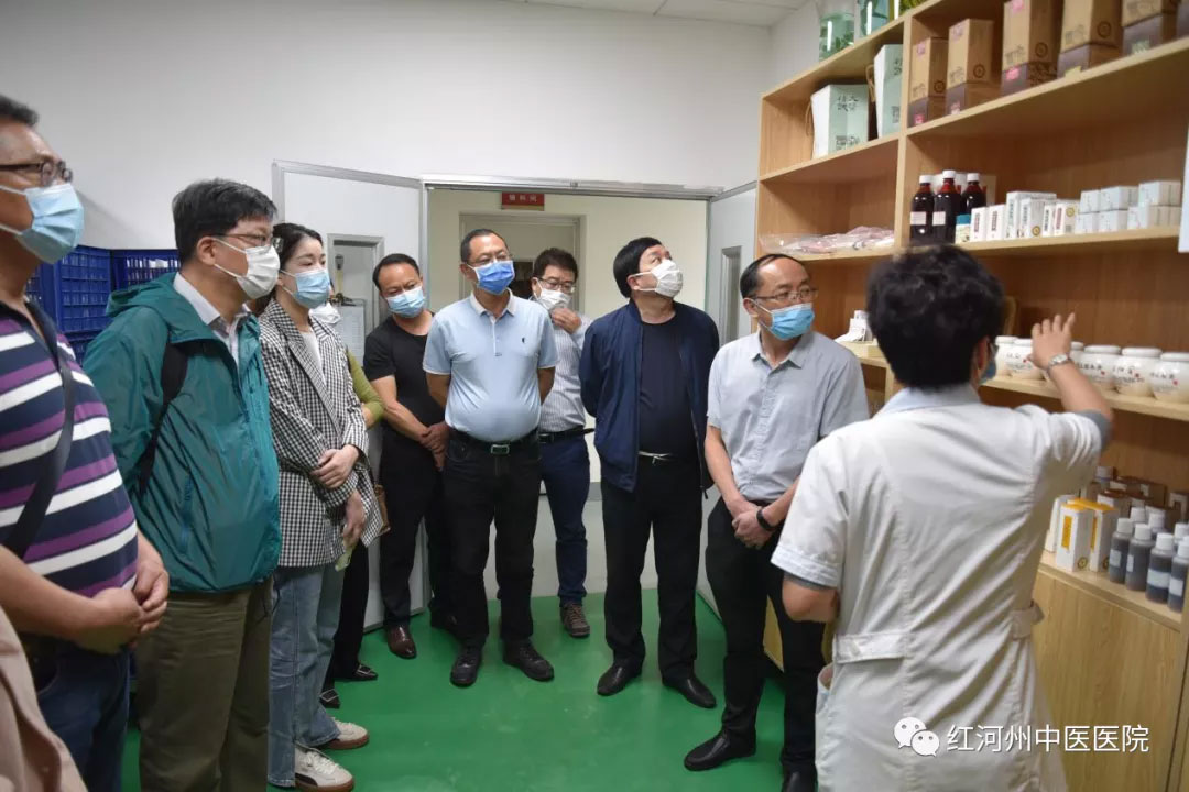 4月17日上午,上海市生物医药科技产业促进中心书记王正刚带领专家一行6人到我院调研中医药制剂发展工作,红河州科技局局长刘杰、副局长王向东,我院党委书记王健、副院长杨建勇、副院长宁选波陪同调研。