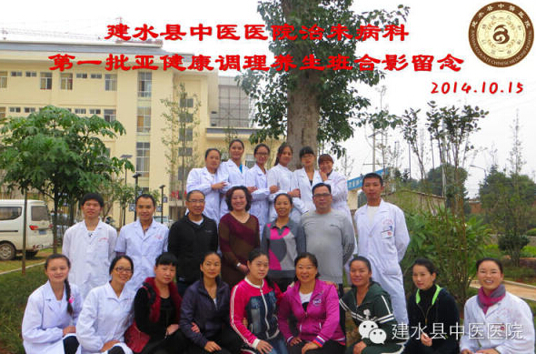 建水县中医医院治未病科第一批10名亚健康患者,经过7天的中医养生调理,于2014年10月17日结束治疗。在7天时间里,通过中医体质辨识、治未病健康理念培训、制定个性化疾病干预方案(中医传统疗法治疗、养生药膳调理、药茶调理、五音疗法、能量禅修打坐、养生修真功等),对亚健康患者制定一整套系统的治疗方案,最终达到了各位患者期望达到的预期目标。(女士色斑淡化、腰围减小、面色红润、精神饱满,其中一位男士体重从97公斤下降到91公斤。)