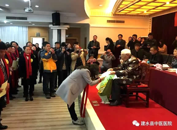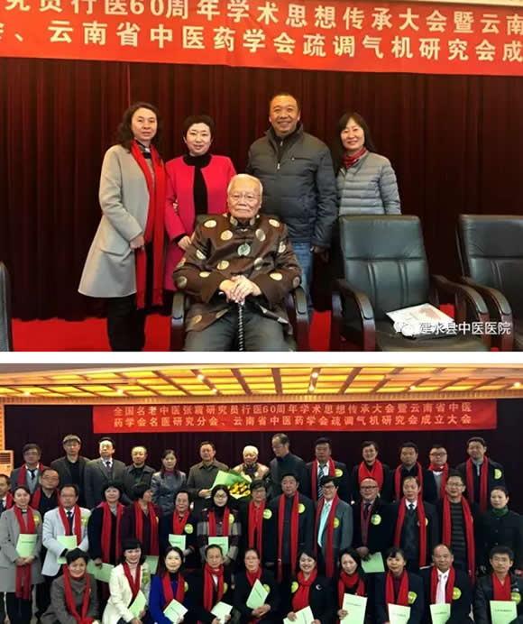 热烈祝贺我院王毅蓉成为全国名老中医张震研究员的第三批学术继承人12月21日,在云南省中医药学会疏调气机研究会成立大会的现场,举行了隆重而别开生面的“拜师仪式”我院内科主任王毅蓉有幸成为名老中医张震研究员30名弟子中的一员,众弟子向老师鞠躬敬礼奉茶,行弟子之仪,正式成为全国名老中医张震研究员的第三批学术继承人。