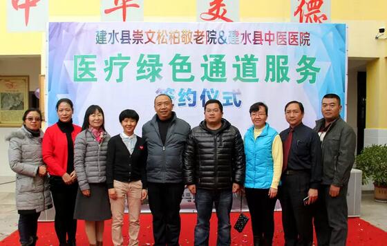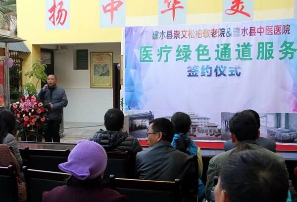 2017年1月1日上午,建水县崇文松柏敬老院与建水县中医医院医疗绿色通道服务签约仪式在松柏敬老院举行。县民政局、县中医医院、崇文社区等相关负责人参加签约仪式。