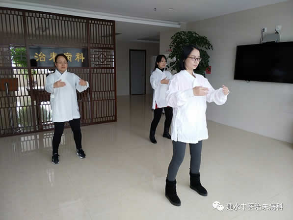▲治未病科赵医生在指导养生功法