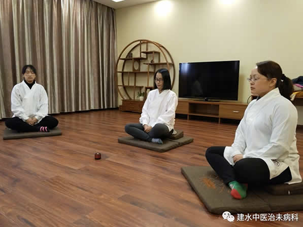 ▲治未病科王主任带领她们打坐