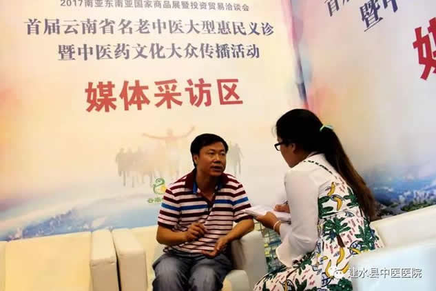 再来关注下我们的院长老王,前来展区的领导是一波又一波,老王忙得不亦乐乎,忙不跌的充分发挥自己的口才,将我院的制剂娓娓道来,让前来围观的人对制剂爱不释手,无不感叹建水县中医医院做中医大健康的丰富内涵和能力。稍不留意,老王不见了,哦!原来是被云南中医记者请到采访间去采访了。这边才采访完,那边春城晚报的记者又到建水县中医医院的展区前进行着现场直播采访,这阵势还真是热闹啊!