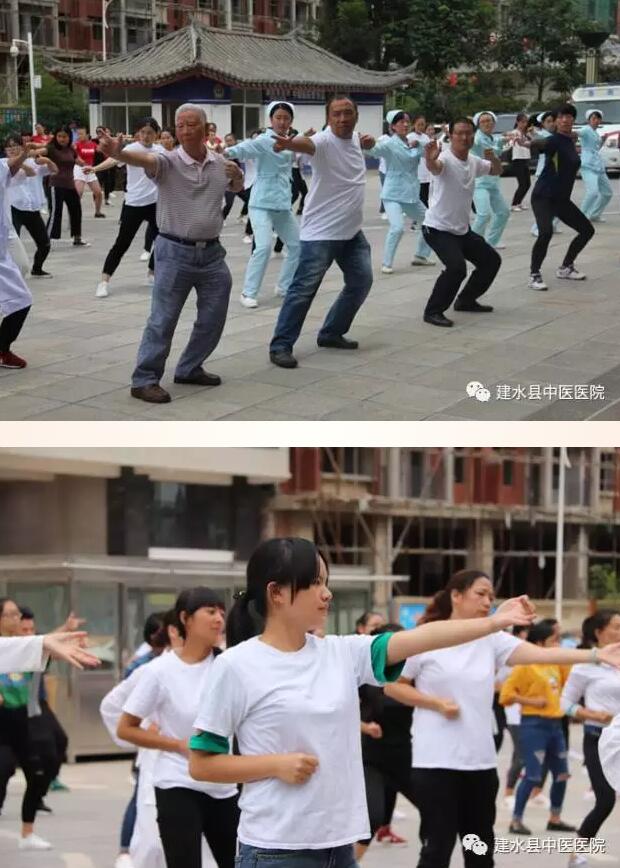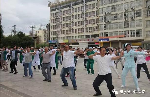 7月14日傍晚, 中医养生气功“八段锦”在建水县中医医院举行,来自云南省中医院的夏惠明教授,香港学员,云南中医微信的颜志群一行3人、建水县中医院领导班子、各科室医务人员,病人及家属、广大人民群众等百余人参加了本次活动。