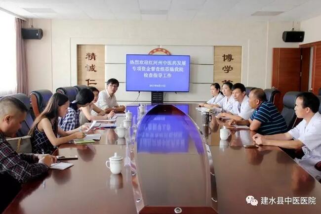 2017年8月17日,云南省中医药发展专项资金绩效考核组专家、红河州卫计委中医科徐琳一行莅临我院,对我院中医医院急诊急救能力建设项目任务落实情况进行现场检查指导工作。州卫计委中医科徐琳主持召开工作会,县卫计局中医科姚颖科长、我院王健院长等出席会议。