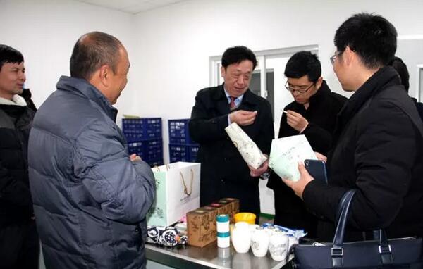 葛秘书长一行参观制剂室,对我院新开发的“月子包”表现出浓厚兴趣