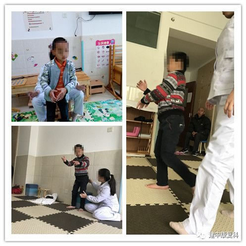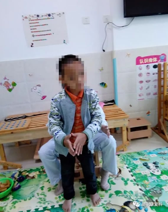 小明积极配合治疗师进行运动功能训练
