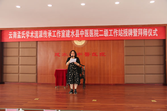 2018年5月7日,云南孟氏学术流派传承工作室二级工作站在红河州建水县中医医院挂牌成立,云南省中医医院党委书记陈燕溪、首届国家级名老中医孟如教授及其传人赵云、红河州卫计委主任张鹏程、红河州第二人民医院院长梁洪明、建水县卫计局副局长常王忠、建水县中医医院全体职工等出席授牌仪式及拜师仪式。