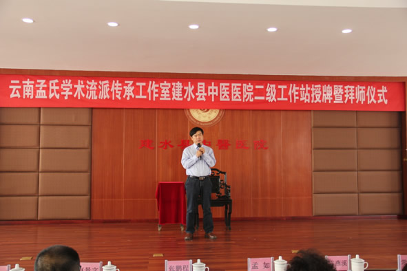 建水县卫计局副局长常王忠致拜师见证词,向两位徒弟表示祝贺,要求他们:要尊敬师傅;要勤奋学习和善于思考。希望各位师承人员传承好孟教授的医术精髓、管理精髓,早日成为中医栋梁之才,传承国粹,发展和引领好中医。