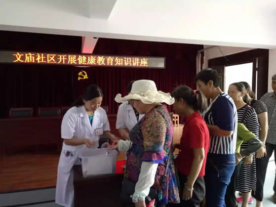 此次开展的义诊活动主要服务对象为文庙社区居民,开展活动的目的是为民众解除疾病隐患,减轻经济负担的同时强化居民卫生健康意识,使广大村民积极主动参与疾病检查。使他们认识到只有定期进行身体检查,才能预防疾病;只有健康的体魄才能全身心的投入到生产建设中去。本次义诊活动累计发放健康教育宣传单10余种200余份,接受咨询诊疗人数50余人次,测量血压30余人次,测血糖20余人次。