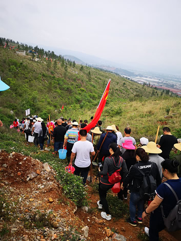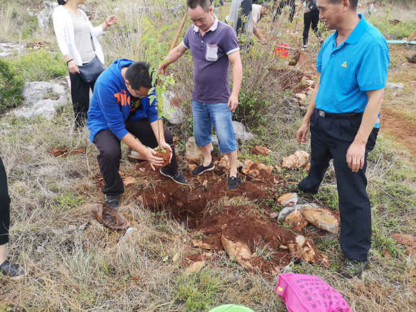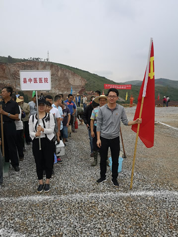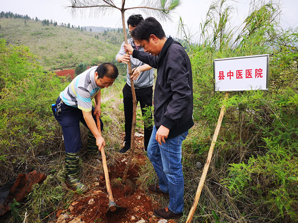 为贯彻落实习近平总书记参加首都义务植树活动时强调的“绿化祖国要坚持以人民为中心的发展思想,广泛开展国土绿化行动,人人出力,日积月累,让祖国大地不断绿起来美起来”讲话精神,深入践行“绿水青山就是金山银山”的理念,进一步加快推进建水县城市和通道面山绿化工作,切实改善生态环境,提升城乡人居环境,结合国家和省州各级关于做好全民义务植树活动的要求,2018年6月5日,建水县组织全县机关事业单位1200余名干部职工到临安镇西湖村小陡崖山开展义务植树活动,我院积极响应号召,由医院党总支书记赵景文带领的20人义务植树小组参加了此次活动。