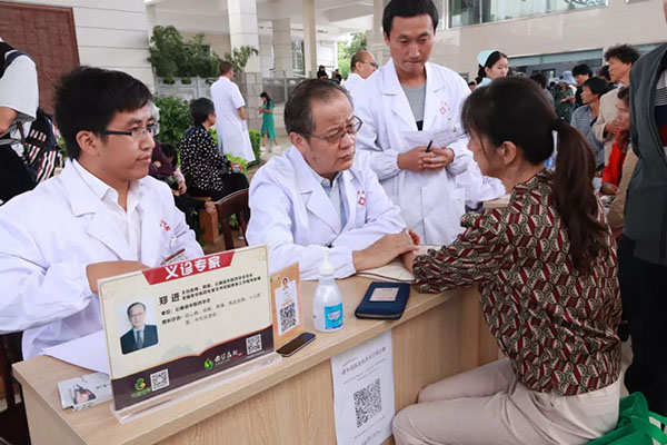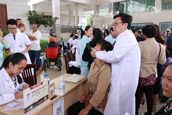 揭牌仪式结束后,专家们在建水县中医医院的门诊大厅,为已经等候在现场的数百名患者开展免费诊疗服务。义诊专家分别有:国医大师张震,云南省中医药学会会长郑进,副会长兼秘书长葛元靖,云南省国医名师夏惠明,云南省中医医院李斯文教授、万启南教授,云南中医药大学张超教授、秦竹教授,云南省中医中药研究院和丽生教授,昆明市中医医院李雷教授、陈静教授。专家们通过望闻问切,耐心、细致地为现场患者提供权威专业的健康解答,真正实现了让百姓在家门口就看上了大师级名中医,同时大师们的风范和谆谆教诲的带教风格更让在场的诸位徒弟终生受益。本次活动吸引了500余名市民参与,受到了建水百姓的热烈欢迎和一致好评。