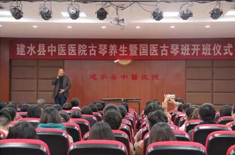 开班仪式共有五项议程:第一项议程是建水县中医医院王健院长致辞,王院长说:“习近平总书记指出,中医药学是中国古代科学的瑰宝,也是打开中华文明宝库的钥匙。建水县中医医院国医古琴班的开班将吹响中医进军大健康的号角,将中医与古琴养生的文化很好地传承下去”。