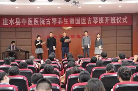 尘外藏心,调弦抚琴,可佐其心,而导其韵,于琴起时,宫商角徵羽,五脏五行五志,仿佛一种无形的力量,直入丹田,寻片刻宁静,觅一方净土,悠远弥淡,看轻烟缕缕缥缈,增一份古意与超然,听一曲琴,清一世心。2018年11月29日19:30,建水县中医医院在四楼多功能厅举行了建水县中医医院国医古琴班开班仪式,开班仪式有幸邀请到:中国民族管弦乐协会会员、云南民族管弦乐协会会员、昆明音乐家协会会员、“西山琴馆”馆主何子珺老师、西山琴馆建水分馆主教高子涵老师;云南传统文化研究会特邀学者、云南画院顾问、昆明西山琴馆建水分馆彩云琴舍馆主许儒慧老师及其学员等嘉宾,我院领导班子、中层干部、国医古琴班学员、社会各界古琴爱好者等近百人参加了开班仪式。
