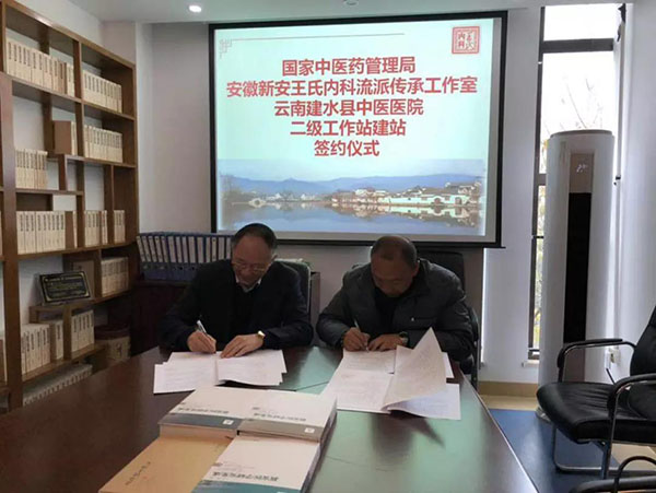 为切实做好中医学术流派传承工作室建设项目任务,加强对中医学术流派临床特色诊疗技术的总结、应用与推广,进一步提高临床疗效,探索开发特色诊疗技术,扩大临床诊疗范围,12月18日至19日建水县中医医院院长王健一行4人赴安徽合肥与新安王氏内科流派传承工作室主要传承人、原安徽中医药大学校长王键教授就在我院建设二级工作站一事达成共识,并签署合作协议。