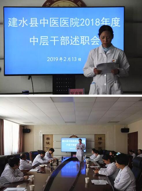 为进一步加强医院干部队伍建设,检验干部履职尽责及目标任务完成情况,强化对中层干部的管理、监督和激励,,2019年2月13日,建水县中医医院院召开了2018年度中层干部述职报告会,医院党政领导班子成员、全院中层干部参加了会议,会议由副院长丁增跃主持。