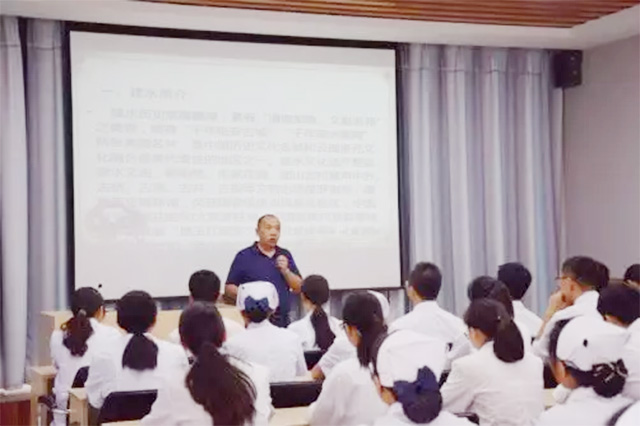 第一堂课由王健院长主讲,首先,他对刚走上工作岗位、即将投身到医务一线的各位新人表示热烈的欢迎,并对他们提出希冀和要求;随后,王院长介绍了建水县中医医院的发展历程及文化建设,使得各位新员工、实习生对建水县中医医院有了更深刻的认识。