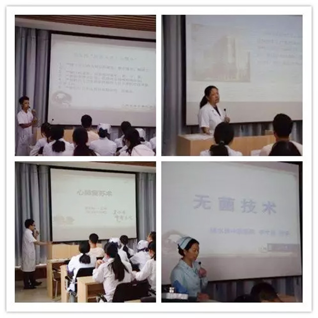 此次岗前培训得到了院领导、相关科室主任及护士长的大力支持,涵盖内容比较广泛,主要包括:卫生法律法规、医院规章制度、职业道德及修养、医院感染管理、职业暴露处置、无菌技术、单人徒手心肺复苏、相关医疗文书书写规范、静脉输液操作、中西医病史采集、传染病疫情报告管理、临床常用辅助检查结果判读、体格检查、常用中西医药剂量及方法、抗菌药物合理使用等。丰富实用的授课内容,极大地激发了新员工、实习生的学习积极性。