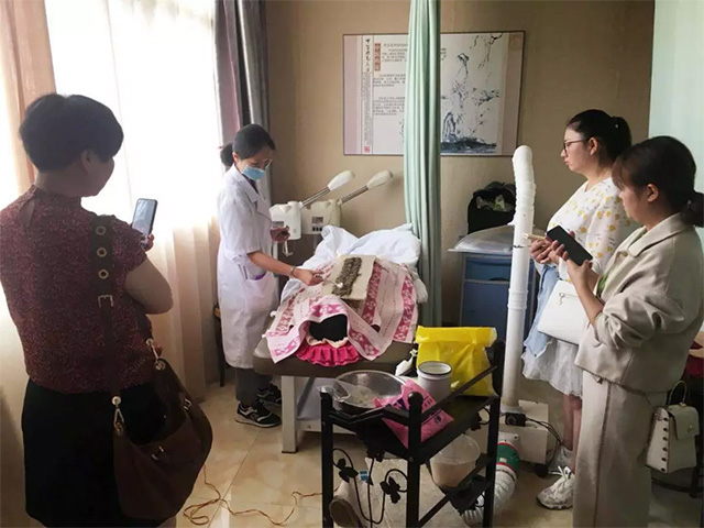 唐滢老师一行5人先后到我院制剂室、治未病科、小儿推拿科、肿瘤科、康复科、皮肤科、针推一科、百草堂参观交流,更深入的了解我院相关情况。在制剂室参观时,老师们深受我院院内制剂吸引,向制剂室沈主任详细了解了一些特色制剂的用途用法;在参观治未病科时,学习了养生修真功、火龙灸疗法、特色颈椎推拿疗法;在参观皮肤科时,皮肤科组长周鹭向大家介绍了我院开展的一些皮肤理疗、面部护理的中医疗法;在参观百草堂时,大家都深深陶醉在古典文化与中医思想结合的唯美意境中,感受了自然与中医融合的古朴静怡,回归自然,领略中医人文精神。