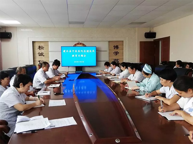 为加强医德医风建设,提高全院职工的职业道德素养和医疗服务质量,构建和谐医患关系。近日,建水县中医医院召开医德医风专题教育培训会,医院领导班子成员,全院40余名中层干部参加了培训,会议由我院党总支书记赵景文主持。