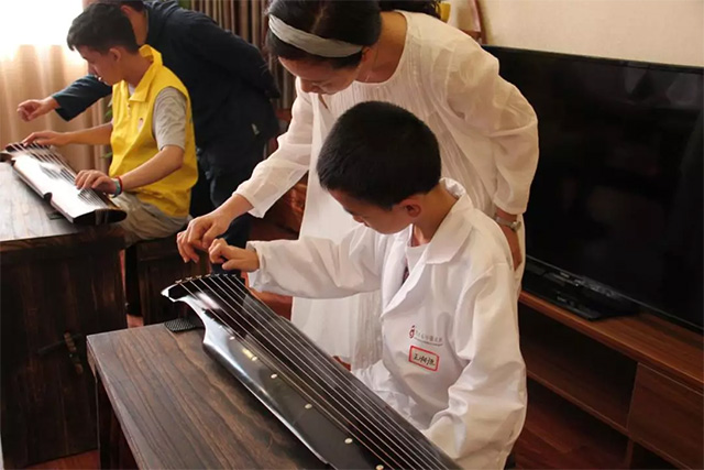 很多孩子连古琴和古筝都分不清,更别说近距离的聆听中医院老师弹奏的古琴。中医院老师演奏完毕后为大家讲解了古琴的历史与特点,孩子们也有幸第一次触摸了中国最古老的乐器。