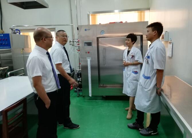 杨凯程老师一行5人到我院制剂室参观考察,制剂室主任沈建云首先向他们介绍了我院制剂室的设计、装修、管理、运营方面的经验;随后向他们介绍了我院的特色制剂和特色大健康产品,并分享了几种中药制剂研制过程的方法经验。