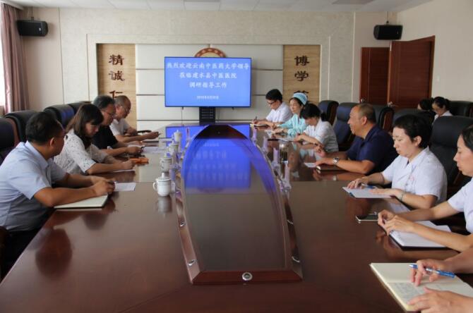 2019年8月20日,云南中医药大学钱子刚副校长、教务处赵文娟副处长、针推康复学院杨剑南副书记、实践教学科王礡科长一行4人到我院开展调研指导工作。