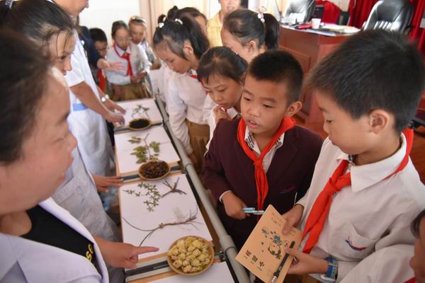 最后,我院中药师带领小朋友们认识野外采集的中药标本和一些常见的中药材,对同学们一一介绍了辨认的方法及其功效。