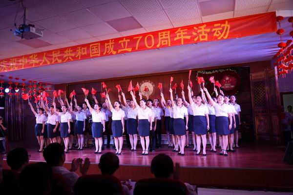 药剂科、制剂科组带来的《今天是你的生日》,用真情的歌声为祖国母亲70华诞献上最美好的祝福;老年病科、康复医学科组带来的合唱《我和我的祖国》,优美的歌声将晚会推向了高潮,从惊喜到感动,从共情到共唱,全场合唱以表达对伟大祖国的衷情依恋和真诚歌颂。