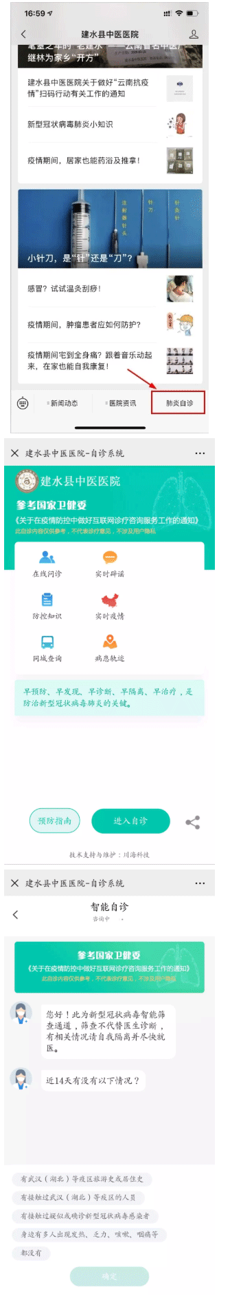 建水县中医医院新冠肺炎自诊工具上线了