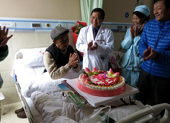 “祝您生日快乐,万事如意,身体早日康复。”1月19日,我县中医院肿瘤科为住院的91岁的老人陈宝龙过生日给他送上了生日的祝福,场面十分感人。