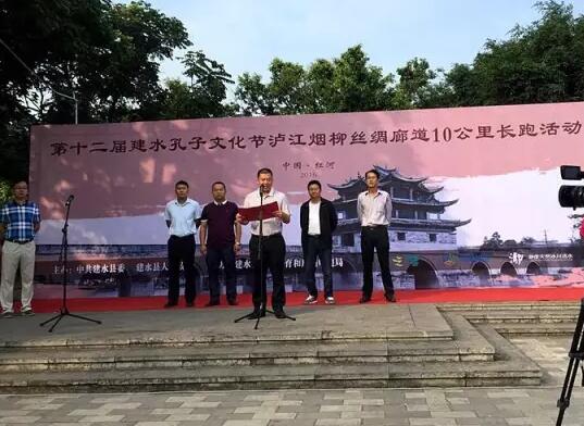 2016年9月25日,由建水县人民政府主办,建水县文体广局、建水古城旅游投资有限公司承办的建水孔子文化节泸江烟柳丝绸廊道10公里长跑活动在县文安府广场开跑了。