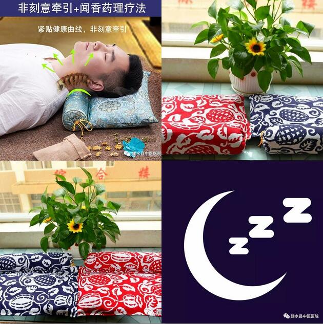 使用方法:此款枕头由圆枕与方枕两部分组成,用中药颈椎枕代替普通家用枕头使用。入睡前将后颈枕靠于圆枕,头部则枕于方枕,以仰卧姿势入睡。一天至少使用两小时。