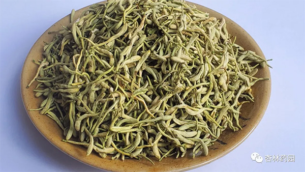 【来源】忍冬科植物忍冬Lonicera japonica Thund.的干燥花蕾或带初开的花。主产于河南、山东。夏初花开放前采收,干燥。