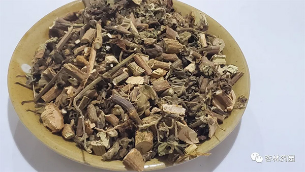 【鉴别要点】本品呈不规则的段。茎略呈方柱形,表面灰褐色、灰黄色或带红棕色,被柔毛。切面有白色髄。叶破碎或皱缩成团,完整者展平后呈卵形或椭圆形,两面均被灰白色绒毛;基部楔形或钝圆,边缘具大小不规则的钝齿;叶柄细,被柔毛。气香特异,味微苦。