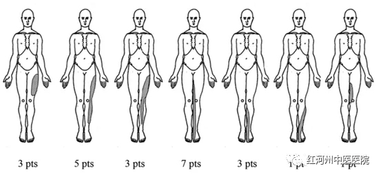 2. 局限在大腿前方的感觉异常提示L2根受累,膝关节内侧感觉异常提示L3根受累;