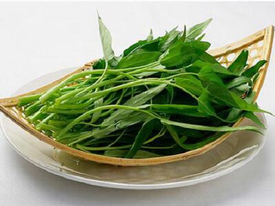 空心菜:又名蕹菜,性甘、平,含蛋白、脂肪、无机盐、烟酸、胡萝卜素等,具有解毒、清热凉血等作用。