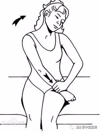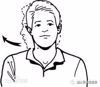 ⑤按压肩井:以左(右)手中指指腹按于对侧肩井穴,然后由轻到重按压10~20次,两侧交替进行。功效:通经活络,散寒定痛。